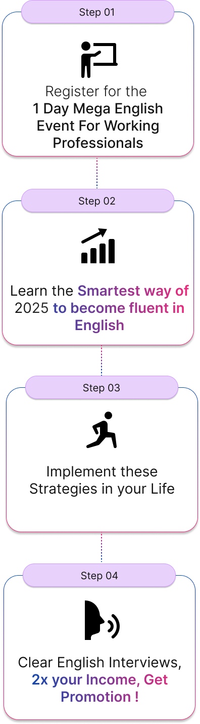 In the Mega English Fluency Event itself, you will get the exact step by step clarity on how to start? what exactly I have to do in order to become fluent in English? The main agenda of this Event is to show you the right path and by following that you will become fluent in English with practice. (You never know the sweet until you taste it, so take the action and join the Event)